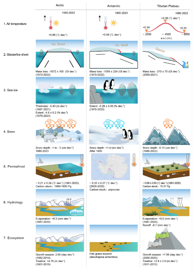 △北极、南极和青藏高原关键气候要素的条件和变化