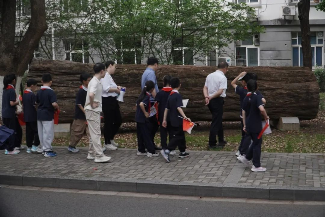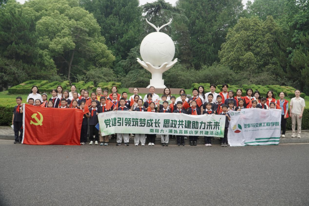大手牵小手,行走思政课。五月的微风轻拂树梢,一场特别有意义的思政共建实践活动在南京林业大学开启。5 月 15 日下午,南京浦外高新小学党支部书记、校长刘宗贵,校长助理卢元玲,带领党团员教师代表、少先队员代表,与南京林业大学汽车与交通工程学院共同开展“大手牵小手·思政共行走”实践活动,在南林大百棵水杉的见证下,厚植家国情怀与生态理念。