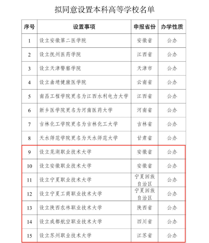 今天(5月22日),记者从教育部官网获悉,教育部拟同意设置安徽第二医学院、天津警察学院、芜湖职业技术大学等32所学校。小编在名单中发现,在新设的32所大学中,23所为职业本科。名单如下↓
