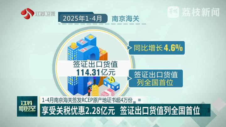 记者从南京海关获悉,随着《区域全面经济伙伴关系协定》(RCEP)政策红利持续释放,今年1-4月,南京海关共签发RCEP原产地证书超4万份,同比增长6.1%。