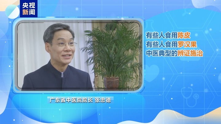 广东省中医院院长 张忠德:脾胃不好的人,吃一点东西就肚子胀,打嗝,可以加点陈皮。如果是阴虚火旺,睡觉睡不好,可以多加点罗汉果,清热润肺。