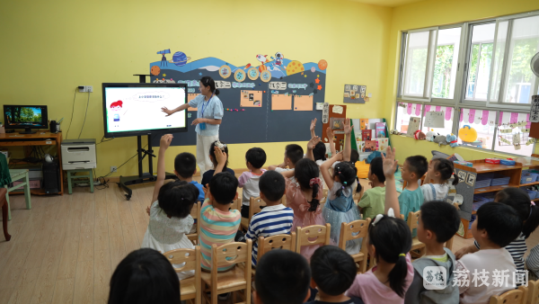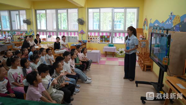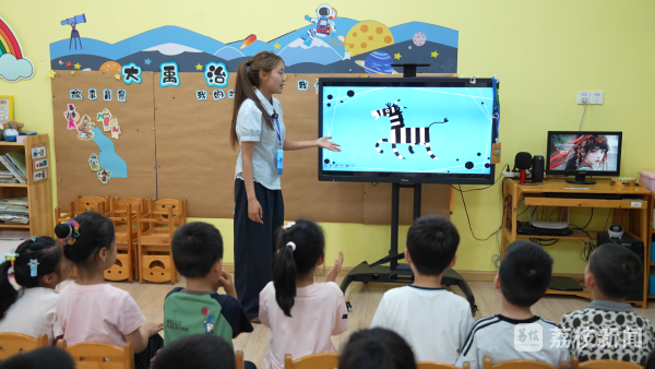 在河海大学幼儿园,来自拉萨师范学院学前教育专业的旦增罗珍正在试上 "斑马的魔法衣"主题课,她以趣味互动引导孩子们观察色彩变化。