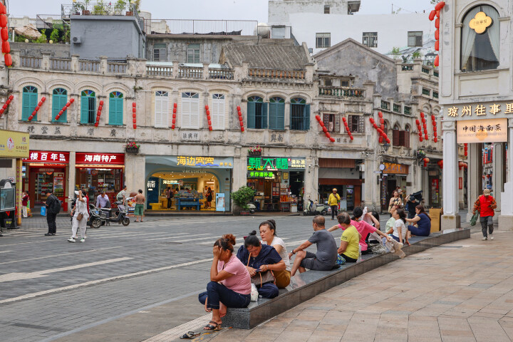 5月26日,海口骑楼老街人流如织。记者 曹雪文 摄