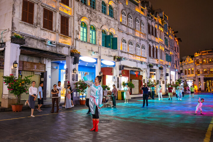 5月26日,海口骑楼老街内热闹非凡,独特的建筑群吸引着各地游客前来游览。精致的雕花窗棂将南洋风情衬得更加浓郁,古朴的小院传来咿咿呀呀的琼剧唱腔,潮流的表演在骑楼间碰撞出奇妙和弦……华灯初上,漫步老街,仿佛置身于新旧交替的诗意空间。