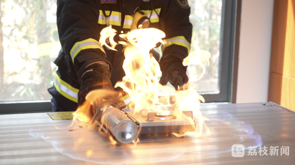 卡式炉使用的是罐装丁烷气,这是一种易燃气体。消防员模拟在气罐泄漏状态下点燃卡式炉,瞬间就发生了爆燃。