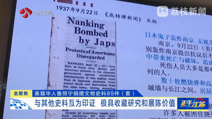 本次,鲁照宁先生捐赠的文物史料共89件(套),包括报纸、杂志、书刊、画册及影像资料。其中,《 纽约时报》《芝加哥每日论坛》《旧金山纪事》等美国权威媒体在当年的报道中,持续关注了南京大屠杀期间,侵华日军在南京犯下的暴行。