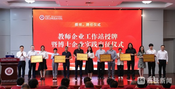 学校亮出106项发明专利成绩单,其中57项已成功转让企业,实现近百万元转化收益。与此同时,南通开发区现场发布人才与科技需求清单,7家企业向学校捐赠实训设备,学校为17个教师企业工作站授牌,博士企业实践出征仪式同步启动。