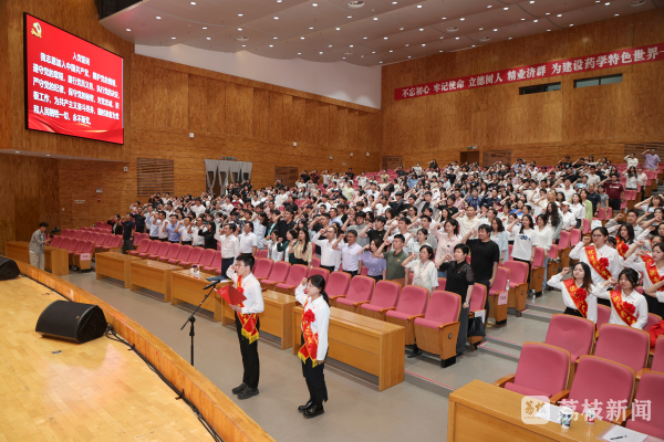 中国药科大学为2025届毕业生党员举行了一场特别的“毕业前党课”。校党委书记戴建君在为即将奔赴西部的同学授旗时勉励道:“这面旗帜,象征着你们将用脚步丈量祖国山河,用行动践行报国之志,让青春之花绽放在祖国最需要的地方。”今年,该校有22名党员毕业生选择扎根西部和基层。