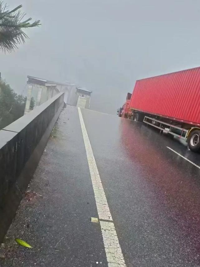 视频显示,有货车及时停车,但车头已经悬空。桥下有车辆,疑似系桥梁倒塌时坠落。华商报大风新闻记者注意到,现场疑似正在下雨。
