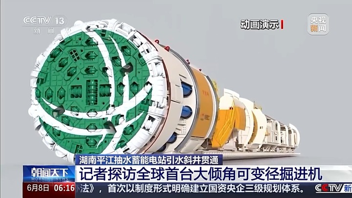 在平江抽水蓄能电站的引水斜井建设中,全球首台大倾角可变径硬岩掘进机——“天岳号”的采用,让斜井的施工速度提高了三倍。