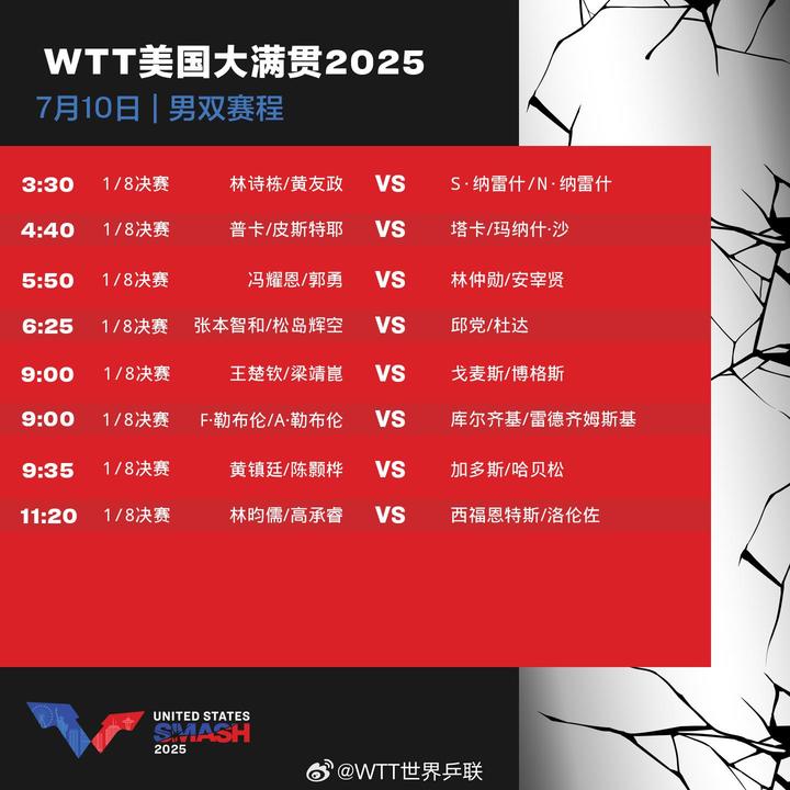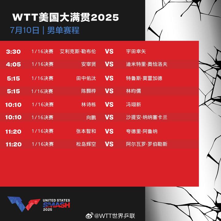 WTT美国大满贯:国乒今日10场比赛 林诗栋一天三战