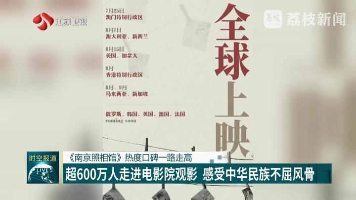 全国公映以来,《南京照相馆》收获如潮好评。电影上映首日,超2.8万人在豆瓣评分,开分达8.5。据灯塔专业版实时数据显示,截至7月26日18:00,该片票房已达到2.33亿元,共有655.2万人走进影院,单日票房、观影人次继续位居全国第一。目前,影片已于7月25日在澳门特别行政区上映,8月将在香港特别行政区上映;8月至9月期间,该片还将陆续登陆澳大利亚、新西兰、美国、加拿大、马来西亚、新加坡等国家院线,让更多人了解这段刻骨铭心的历史记忆。