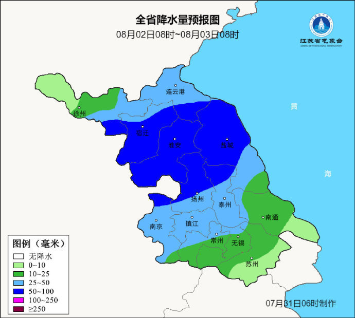 江苏省自然资源厅、江苏省气象局7月30日18时10分联合发布2025年度第2号地质灾害气象风险预警预报: