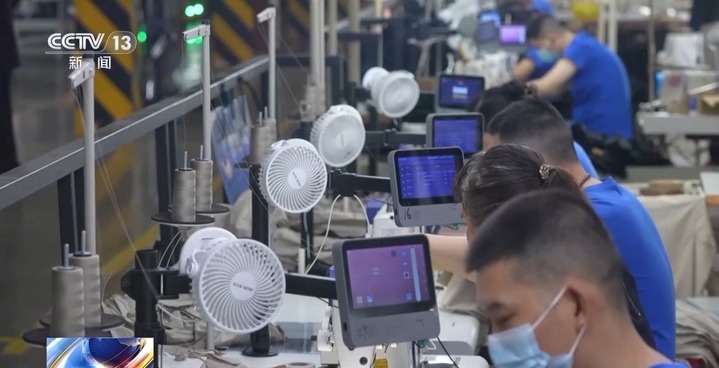 在生产车间,工作人员正在赶制最新的订单,每个工位前都有一块小屏幕,搭载公司自主研发的一款全流程数智一体化系统。利用它,可以一键派发任务,计算产能等。
