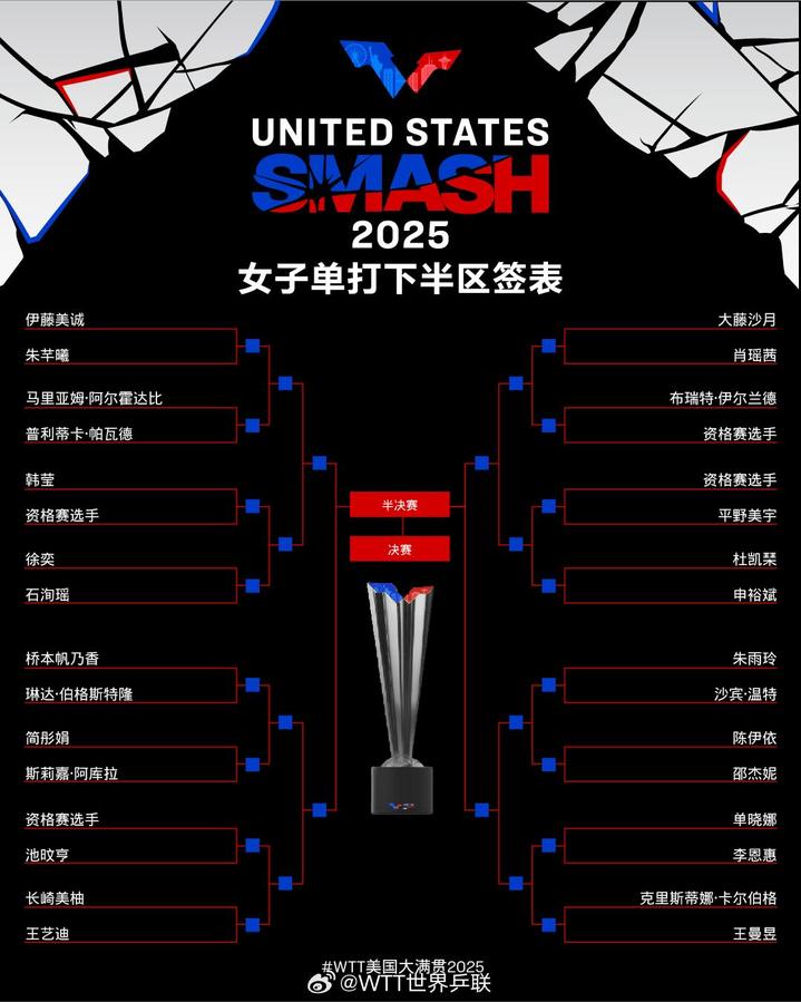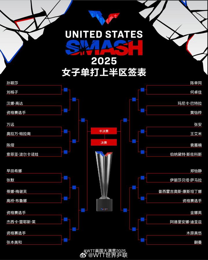 北京时间7月5日凌晨,2025年WTT美国大满贯赛事举行了抽签仪式,随后公布了男女单打签表。