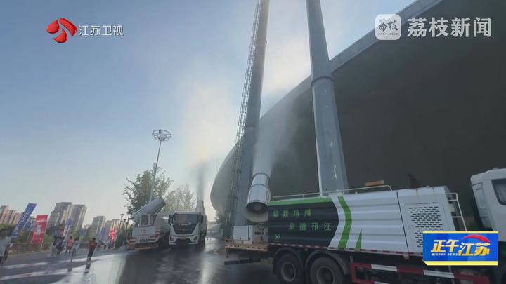 比赛正值高温天,为了打赢这场足球与高温的“硬仗”,多项降温保障措施全面上线。当晚比赛的扬州体育公园内设置了28个免费饮水点、100余桶降温冰桶共计约10000公斤冰块,每个冰桶旁还配置了毛巾,供观众随时取用。为方便外地球迷停车,扬州不少本地球迷选择共享单车、电动车等方式抵达现场,场外安保人员则指引大家规范有序停车,保持过道畅通。公交部门也开足马力,加大公交接驳车辆投入。
