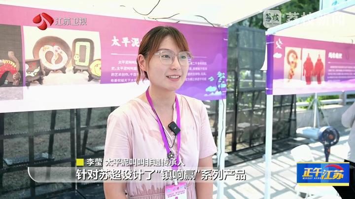 太平泥叫叫非遗传承人李莹说:“太平泥叫叫针对‘苏超’设计了‘镇响赢’系列产品,希望吹响它,能够把最美好的寓意带给‘苏超’。”