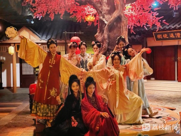 运河密城以运河发展脉络为轴线,划分出春秋开凿、隋唐繁荣等9大主题场景,为实践团学子提供了锤炼演员表现力与专业能力的立体舞台。在这里,他们既要以专业艺术功底呈现历史场景,更要通过互动演绎让游客深度沉浸,每一个环节都是对专业能力的实战打磨。