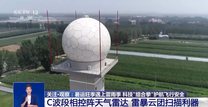 在北京大兴机场,全国首部C波段相控阵天气雷达正在24小时检测着天气变化,这也是世界上首部在民用领域业务化应用的C波段的天气雷达。