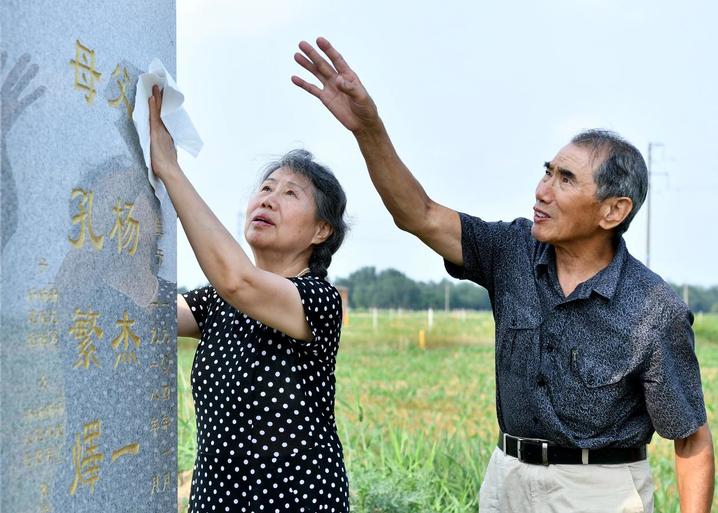 7月8日,在河北省肃宁县冯家庄村,杨光明(右)、杨若梅为父亲母亲的合葬墓扫墓。在河北献县的马本斋纪念馆里,史料无声地诉说着回民支队的热血传奇。那些曾以血肉之躯筑起长城的战士们,他们的英魂与精神,于此汇聚,凝成永恒。
