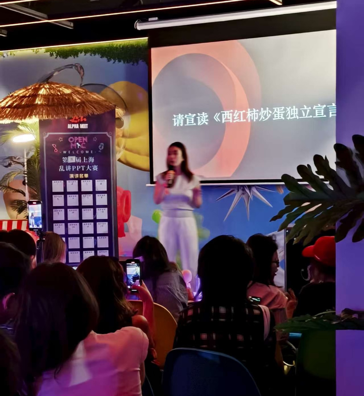 同时,这也是一场高强度的“能力练兵”,直指如今稀缺的素质——“反脆弱”能力。随机出现的陌生幻灯片内容是对参与者即兴表达、逻辑组织和应变能力的极限挑战。要在毫无准备的情况下,将毫不相干的图表、文字迅速组合成一个能自圆其说的故事,这恰恰是在当下最为珍贵的核心软技能。虽然该活动是以游戏的形式呈现,但却完成了对年轻人职业能力的硬核提升。