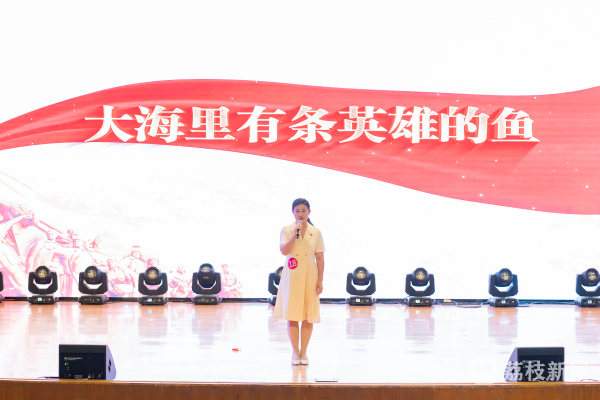 《19岁的永恒芳华》《谢家巷的抗战薪火》《比炮火更有力量的声音》…… 一个个感人至深的鲜活故事,从泛黄的史料中走出,在宣讲者的讲述里凝聚成可歌可泣的英雄群像。其中,扬州工业职业技术学院栾辉老师带来的《大海里有条英雄的鱼》,生动再现了新四军战士海有鱼铁骨铮铮、舍生取义的英雄壮举 ——“他冒着弹雨冲向敌阵,白刃战连刺五名日军,腹部被刺穿仍将刺刀钉进敌人胸膛……”,让全场观众深为震撼。为还原 1945 年高邮三垛河口伏击战的真实场景,栾辉曾多次走访战役纪念馆,与烈士战友后人促膝长谈。“每一次对史实的挖掘,都是一次与英雄的精神对话。” 赛后感慨时,她说道,“看到台下观众湿润的眼眶,我知道红色种子已在他们心中扎根。”