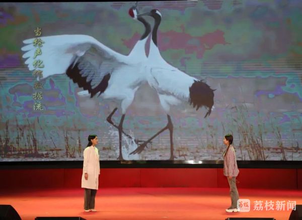 活动伊始,盐城师范学院学生带来情景朗诵《牧鹤女孩,绿之守护》。两代“守绿人”跨越时空对话,将徐秀娟用生命守护丹顶鹤的故事与当下黄海湿地保护实践相融,6分钟的表演,让“绿色坚守”的信念悄然浸润人心。随后,盐城工学院思政教师以《0.01毫米的青春刻度》开讲,从抗战时期吴运铎用血肉打磨武器精度,到如今师生深耕智能分拣机器人、新能源电池优化,微小零件里的“匠心”,成了科技报国的生动注脚。