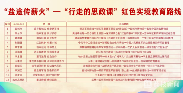 紧接着,“盐途传薪火”——“行走的思政课”红色实境教育路线正式发布。12条路线串联起新四军纪念馆、五条岭烈士陵园等红色场馆与以烈士命名的镇村,每一条都藏着盐阜大地的红色记忆。随后,盐城师范学院思政教师讲述王强老师用生命坚守马克思主义阵地的故事,《薪火相传承信仰之光,躬身笃行担青年使命》的微课,让“担当”二字愈发清晰。