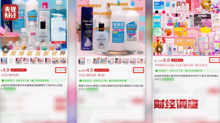部分商家转移销售阵地,在网络上进行销售。记者在多个短视频平台上发现,销售起泡胶、水晶泥等软泥玩具的账号不仅视频的点赞数量高,购买的网友也很多。