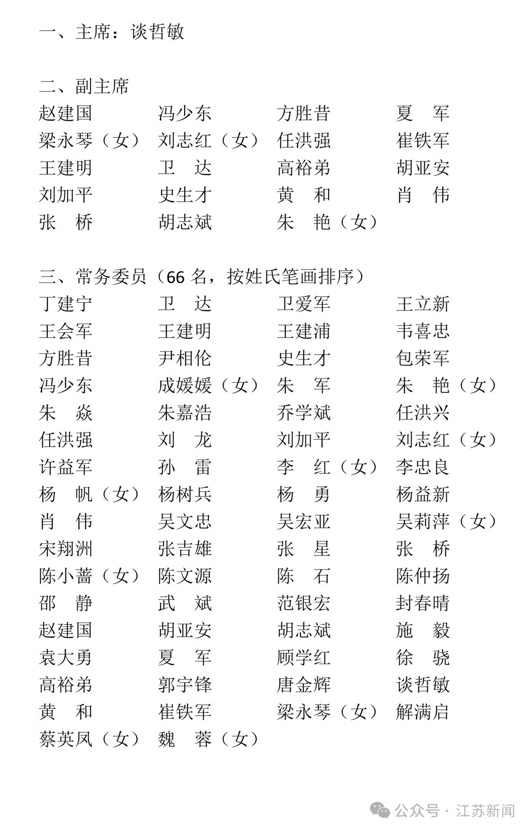 刚刚!江苏省科协新当选主席、副主席名单公布 荔枝新闻 2026-01-14 15:45 今天下午(1月14日),在江苏省科学技术协会第十一次代表大会闭幕会上,新当选委员会主席、副主席、常务委员名单正式公布。中国科学院院士、南京大学校长谈哲敏当选江苏省科学技术协会第十一届委员会主席。江苏广电荔枝新闻中心记者丨黄蒙