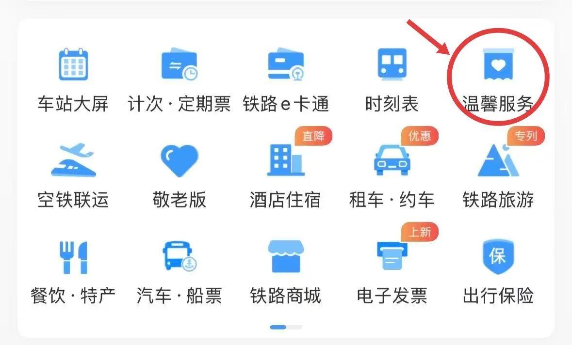 打开铁路12306App,在首页找到温馨服务,在打开的界面中点击“遗失物品查找”。