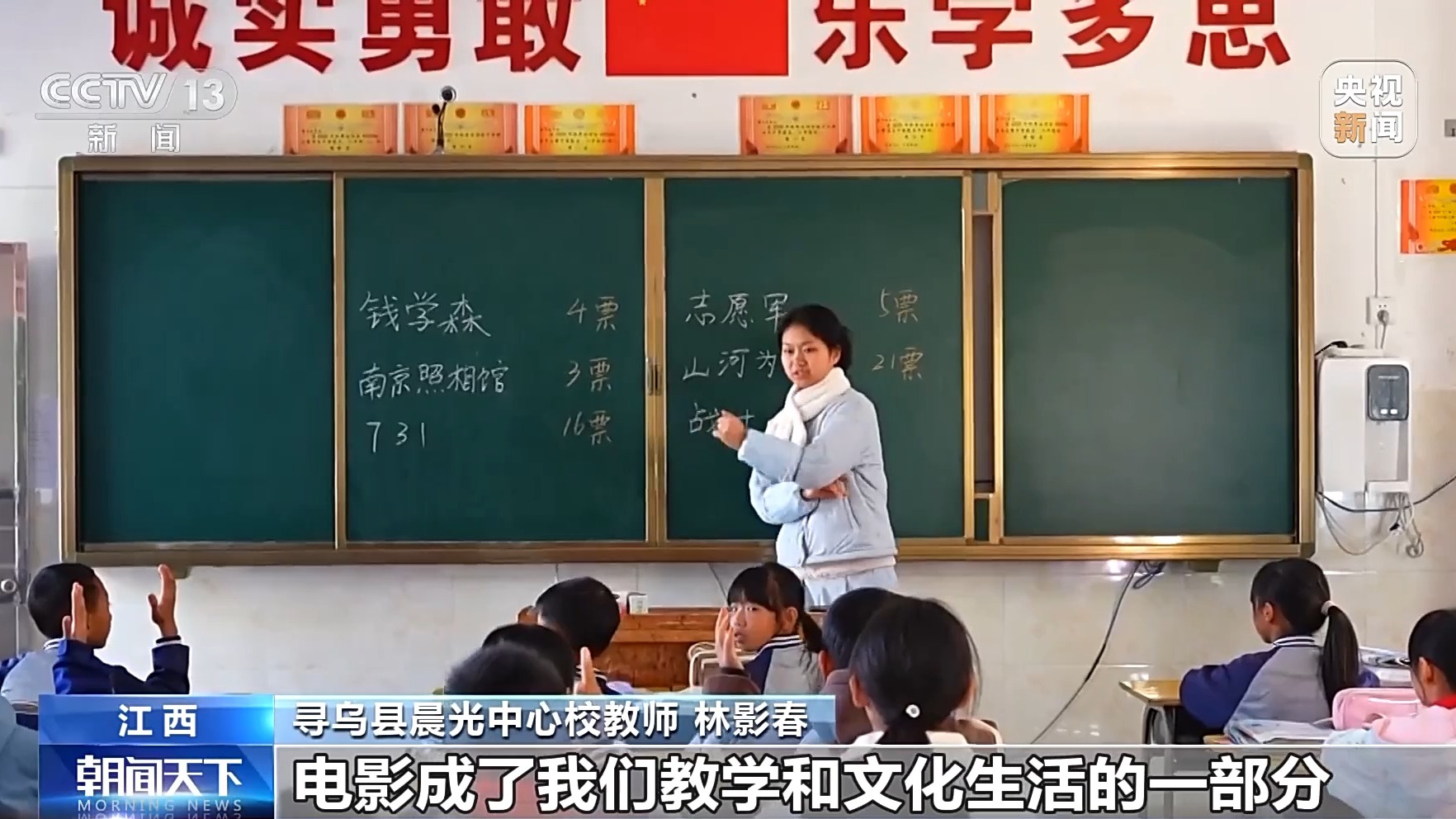 寻乌县晨光中心校教师 林影春:现在可以根据教学安排或者孩子们的兴趣点,从几百部电影里自主挑选,每周至少放映一次,这样孩子们可以开阔眼界学到更多东西,接受度也特别高,电影成了我们教学和文化生活的一部分。