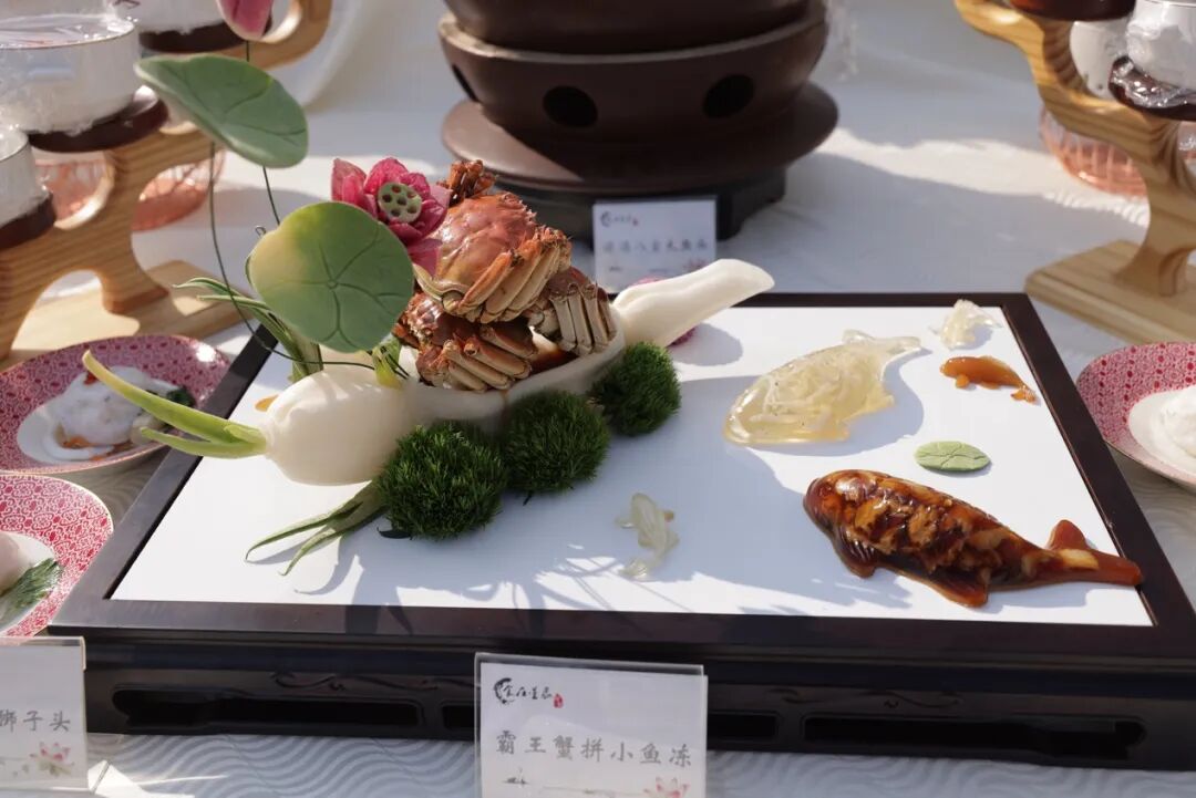 第二轮《百县千味·地标美食挑战赛》:战火转入开放式厨房,各战队在规定时间内,现场完成2道凉菜、2道热菜与2道点心,开展地方风味标杆之间的直接对话。宿迁的霸王蟹、乾隆贡酥,徐州的蜜汁吊地瓜、五味拌羊肉,连云港的豆丹、三味梭子蟹等一道道美食造型精致,风味独特,让现场市民游客大饱眼福、口福,烟火气十足!