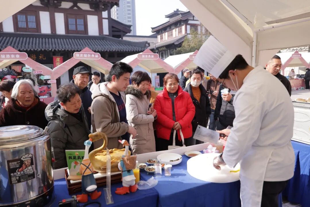 这不仅是厨艺的巅峰对决,亦是一场交织文化底蕴、旅游活力与全城欢腾的美食盛会!活动现场同步开放“品味楚汉山海”美食市集,项妃鸭、车轮饼、张老鹅等特产展位前人头攒动、香气四溢,楚汉山海的风味在此集结;洋河等宿迁名酒展区更是人气爆棚,展销、抽奖活动接连不断,让“酒都”风采在欢声笑语中尽情绽放!