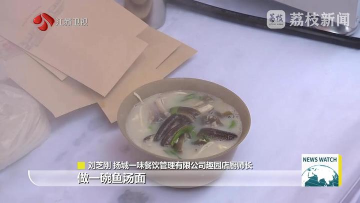 扬城一味餐饮管理有限公司趣园店厨师长刘芝刚说:“利用刀法把鳝鱼划成鳝丝,用鳝鱼骨加上小鲫鱼熬成一锅浓浓的鱼汤,然后再配上传统碱水面,做成一碗鱼汤面。”