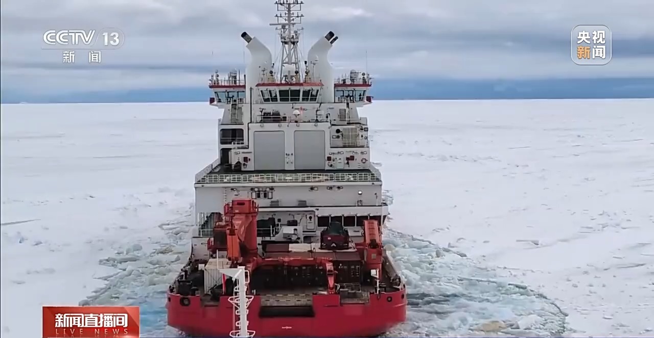 总台央视记者 王善涛:从中山站到秦岭站,“雪龙”号一路上先后穿越了固定冰区、乱冰区,在清水区航行时,还要躲避多个气旋的影响,最终走到了这里。