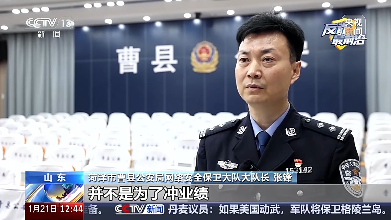 菏泽市曹县公安局副局长 王征:这个犯罪产业链条层次清晰,他们相互独立,但是又紧密协作,形成了黑色利益的共同体,严重威胁了公民的财产安全和社会稳定。目前,我们已经抓获了30余名犯罪嫌疑人,查获用公民个人信息注册的各类手机号、App账号数百万条,价值4000余万元。