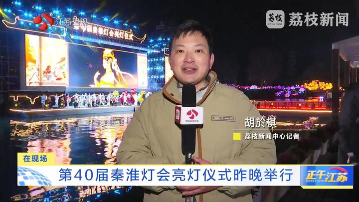 荔枝新闻中心记者胡於棋说:“我现在所在的地方是南京的白鹭洲公园,第40届秦淮灯会的亮灯仪式正在进行当中。今晚的白鹭洲公园喜气盈门,华光流转,在一众期待中所有灯组渐次点亮,整个景区变得流光溢彩。”
