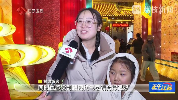 甘肃游客说:“灯彩很温暖,同时也跟现代气息结合得很好,感觉南京是一座有着厚重历史感与市井繁华并存的城市。”