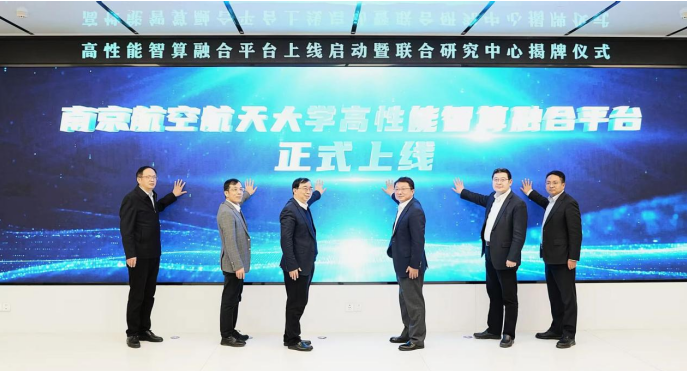 姜斌、历军、彭胜军、张启钱、王海荣、张国鹏共同启动了高性能智算融合平台。在倒计时声中,平台点亮,象征着南航在智能计算领域迈入全新阶段。