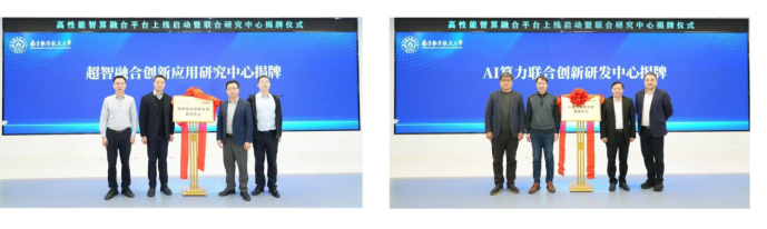 仪式上,南航与中科曙光共同为“超智融合创新应用研究中心”揭牌;与江苏联通共同为“AI算力联合创新研发中心”揭牌。