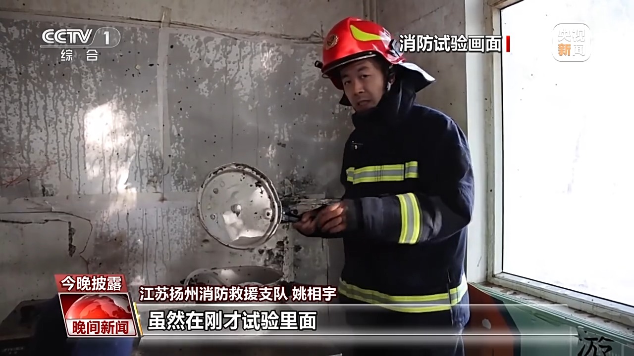 江苏扬州消防救援支队 姚相宇:虽然在刚才试验里,高压锅也出现了向外排气、泄压的情况,但是因为它整个排气、泄压的量比较小,火的加热升压速度是比较快的,最终,导致整个锅体出现物理型爆炸。