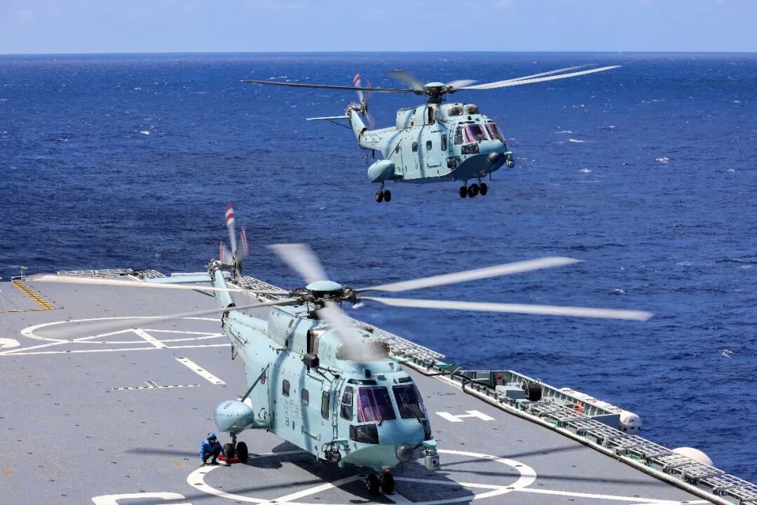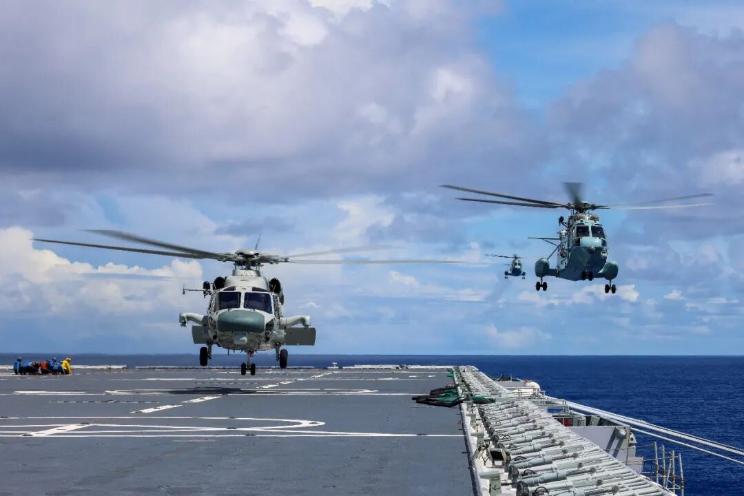 舰载直升机腾空而起