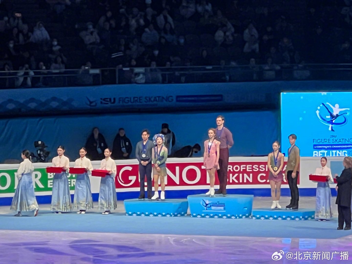 隋文静韩聪获四大洲花样滑冰锦标赛双人滑项目亚军 北京新闻广播 2026-01-25 06:47 北京时间1月24日晚,2026国际滑联四大洲花样滑冰锦标赛双人滑项目结束争夺。短节目排名第一的隋文静/韩聪组合在自由滑中出现失误,最终获得124.97分,以总分200.99获得亚军。美国组合夺得冠军,日本组合位列第三。