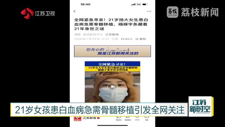 这几天,我们江苏广电总台持续关注了21岁的扬州大学音乐学院女生周和瑶。2025年7月,正全力备战考研的她,被查出患有白血病,急需骨髓配型。求医路上,一个隐藏了21年的身世秘密也被揭开,原来她并非父母亲生,但自幼被养父母视若珍宝。如今病危的她全网寻亲,希望能找到亲生父母,带来生的希望。