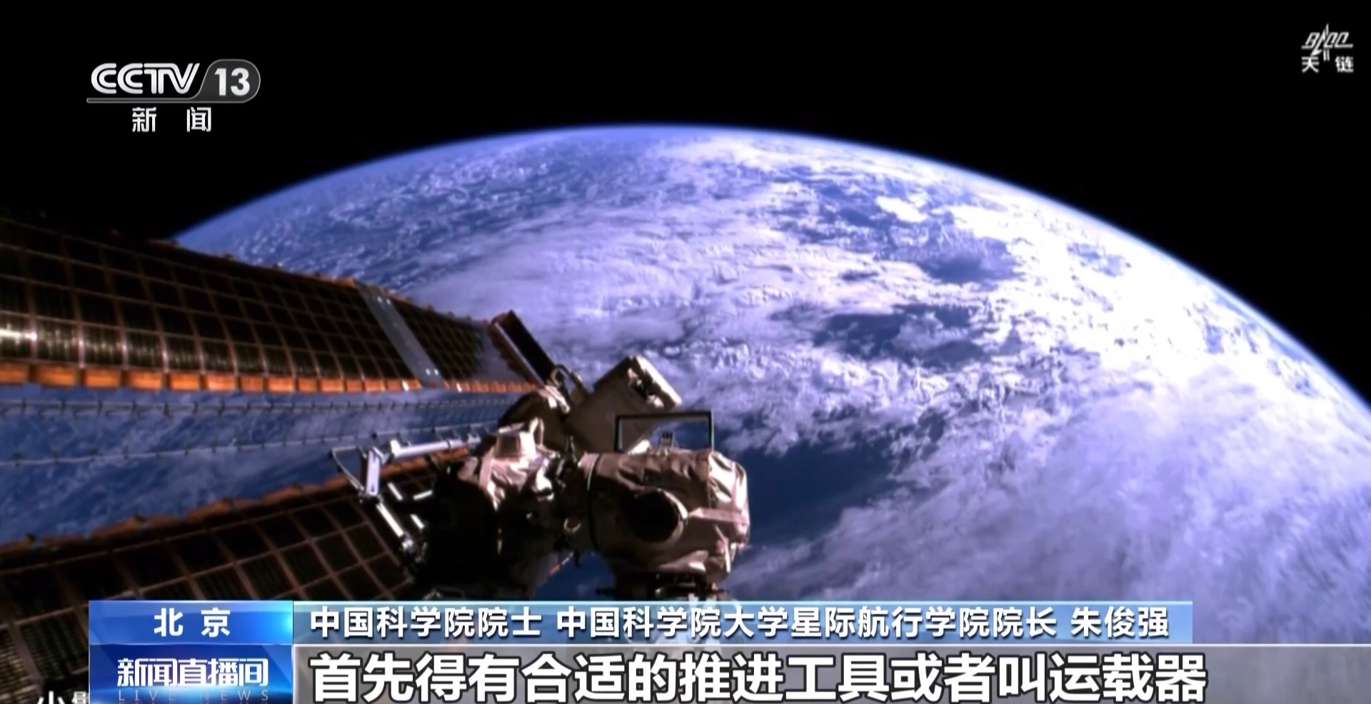 中国科学院院士、中国科学院大学星际航行学院院长 朱俊强:人要到太空去旅行或者进行星际航行,首先得有合适的推进工具或者叫运载器。现在就需要解决燃料问题,现在的燃料的热值还偏低,要把运载器推到更远的空间,它需要携带的燃料很多。如果将来燃料的热值很高,带少量的燃料就可以实现推进了。