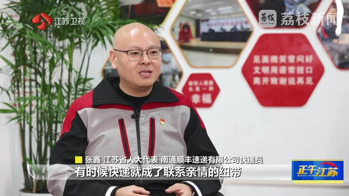 江苏省人大代表、南通顺丰速递有限公司快递员张鑫:“今年孩子又寄了东西回来。”