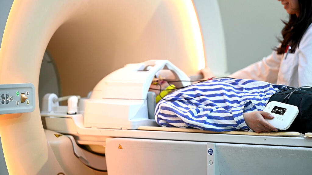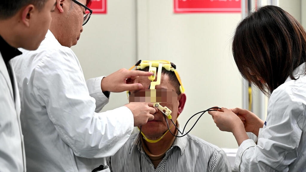 1月8日,在南京鼓楼医院患者佩戴脑机接口设备,利用磁共振设备进行多模态脑成像与神经信号解析。王振雅 摄