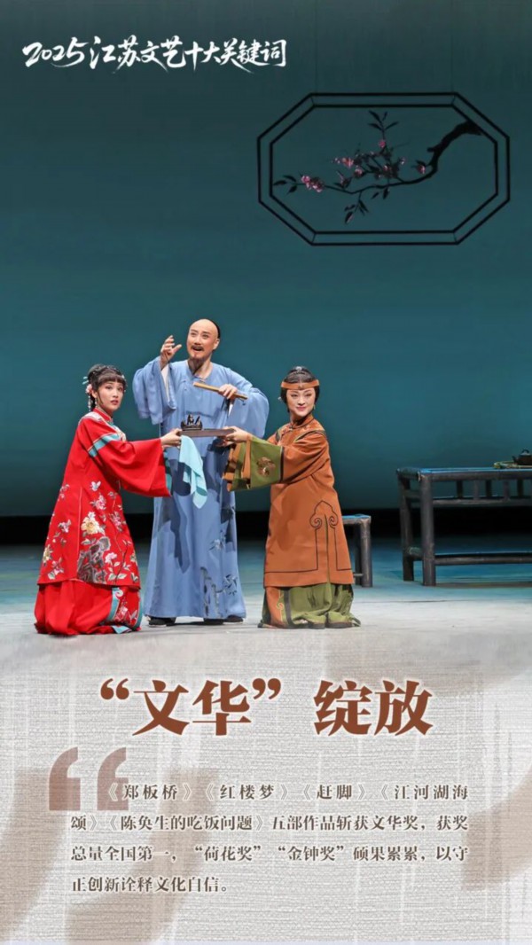 “2025江苏文艺十大关键词”推荐活动由省文艺评论家协会、南京大学新闻传播学院、新华日报社全媒体文化新闻部共同举办,由专家推荐并结合网络大数据最终得出。活动旨在梳理并解读当年江苏乃至全国具有代表性、影响力与深层内涵的文艺现象与文艺事件,聚焦重大主题创作、引导社会文化审美,推动文艺评论与创作的深度互动,打造面向互联网条件下的江苏省文艺评论品牌。本次推荐的十大关键词勾勒出新时代江苏文艺守正创新、扎根人民的生动图景,串联起文艺赋能发展、精品引领风尚、全民共享繁荣的年度脉络。
