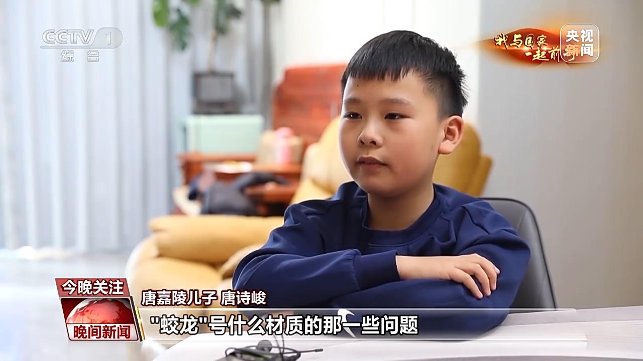 唐嘉陵儿子 唐诗峻:我同学就会问我,“蛟龙”号什么材质的一些问题。他们说这些问题的时候,我想起来我的爸爸告诉我这些事情,然后我就会给他们解答出来。